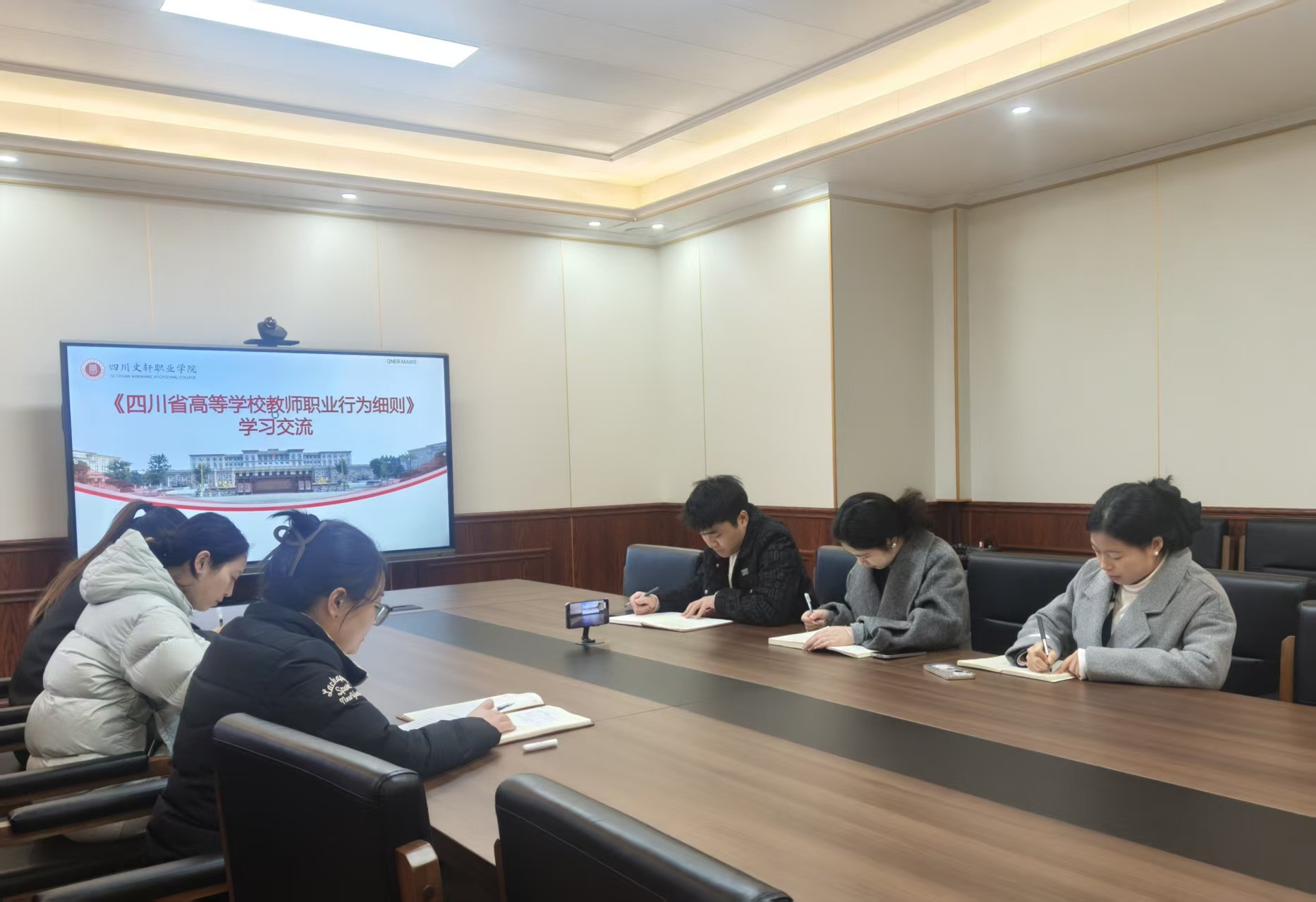 12月19日,学校党委办公室、组织统战部、宣传部等党委职能部门深入学习贯彻《四川省高等学校教师职业行为细则》(以下简称《细则》)。本次活动采取线上线下相结合的方式,与成都校区同步进行,通过腾讯会议平台开展交流研讨,实现学习全覆盖。